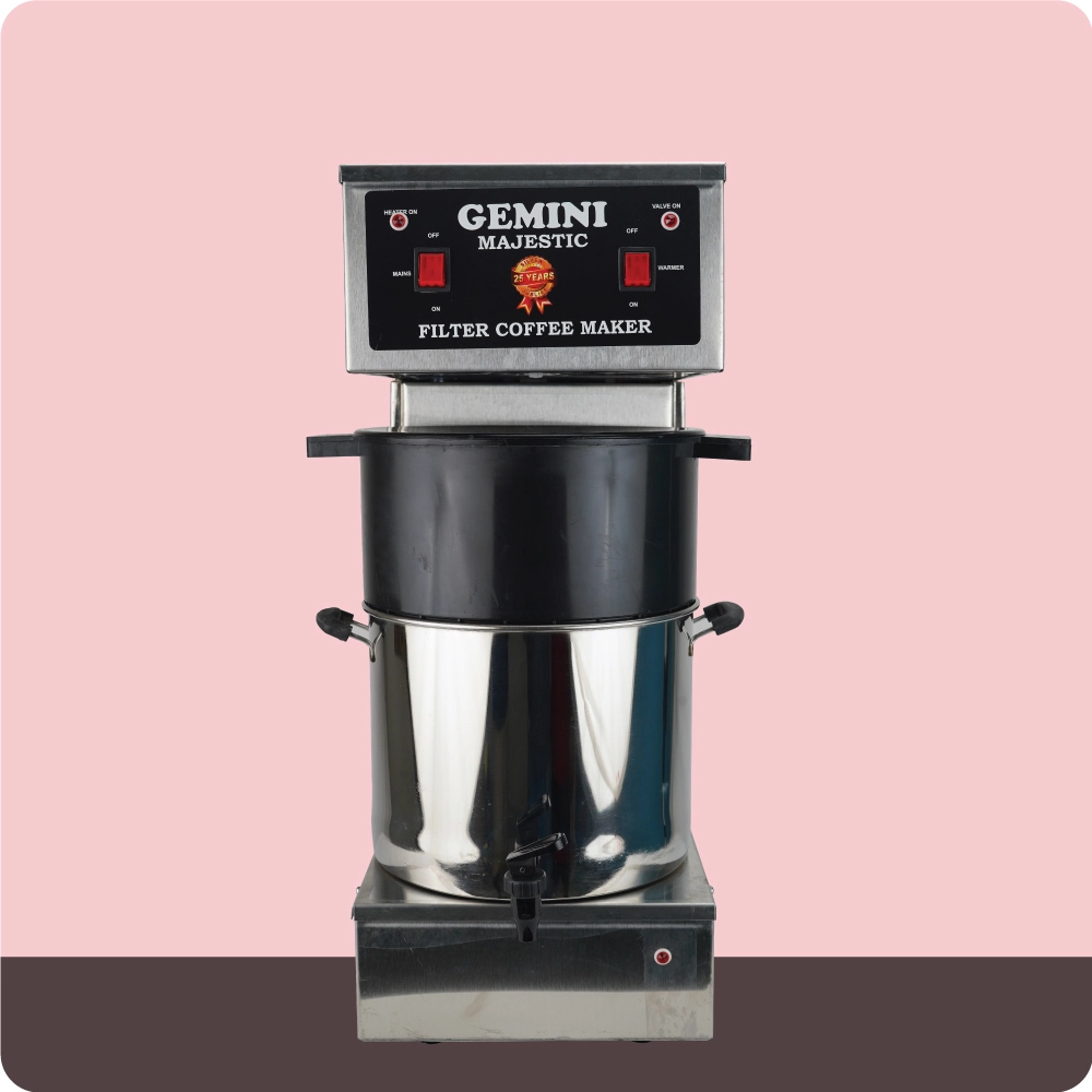 Gemini Majestic Filter Coffee Maker – Built for large-scale operations and bulk brewing needs, this premium model is suited for catering services, industrial kitchens, and high-volume outlets. The Gemini Majestic filter coffee maker delivers superior output while maintaining authentic taste and strength.